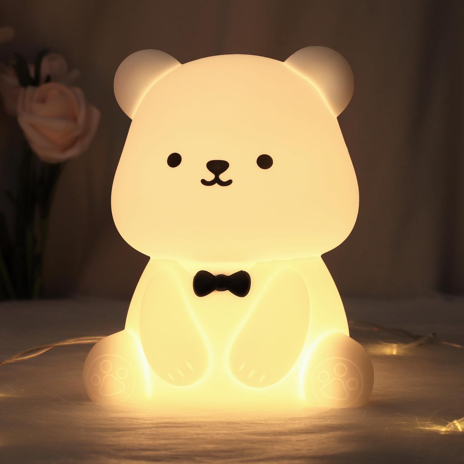 Luz noturna de ursinho de pelúcia para crianças, berçário ao lado da lâmpada de silicone, recarregável por USB, luz noturna de quarto infantil com 8 luzes coloridas, presentes
