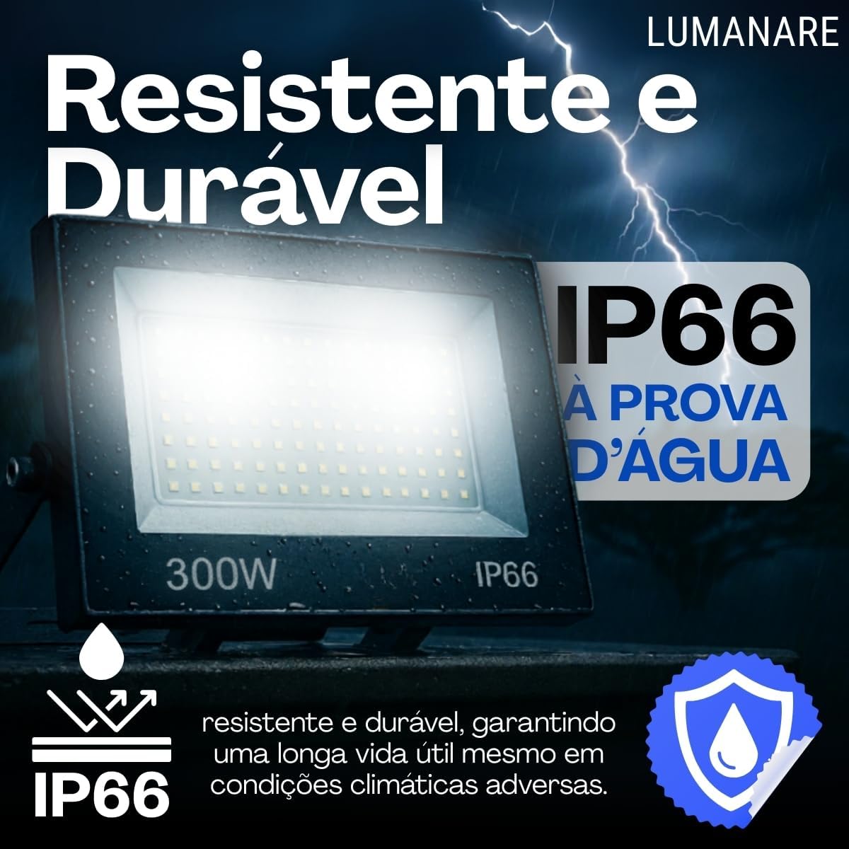 O Refletor LED Holofote 300W Branco Frio 6500K IP66 é uma escolha estratégica para quem deseja máxima visibilidade e resistência.